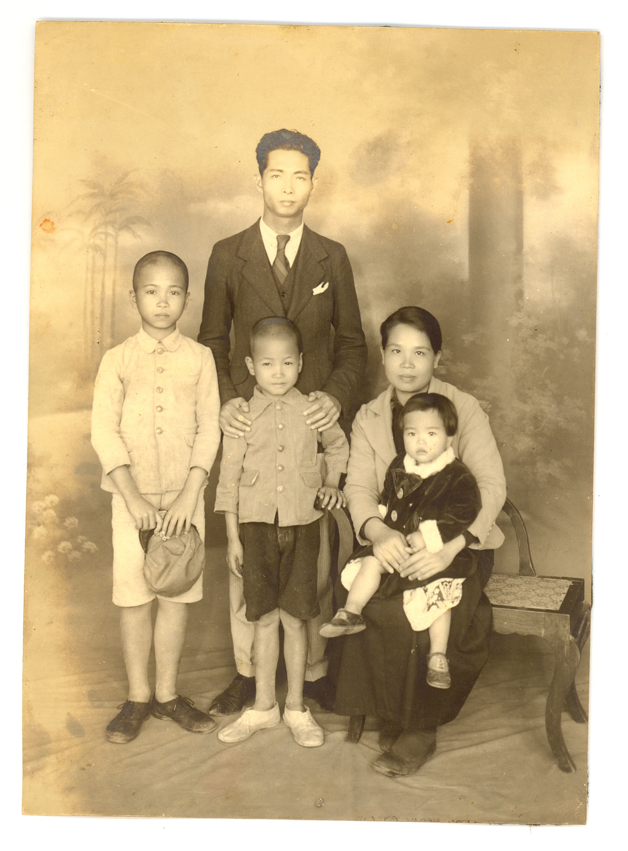 古倫美亞創作時期鄧雨賢全家福照,妻子(鍾有妹)、長子(仁輔)、次子(仁侃)、女兒(富美惠)。