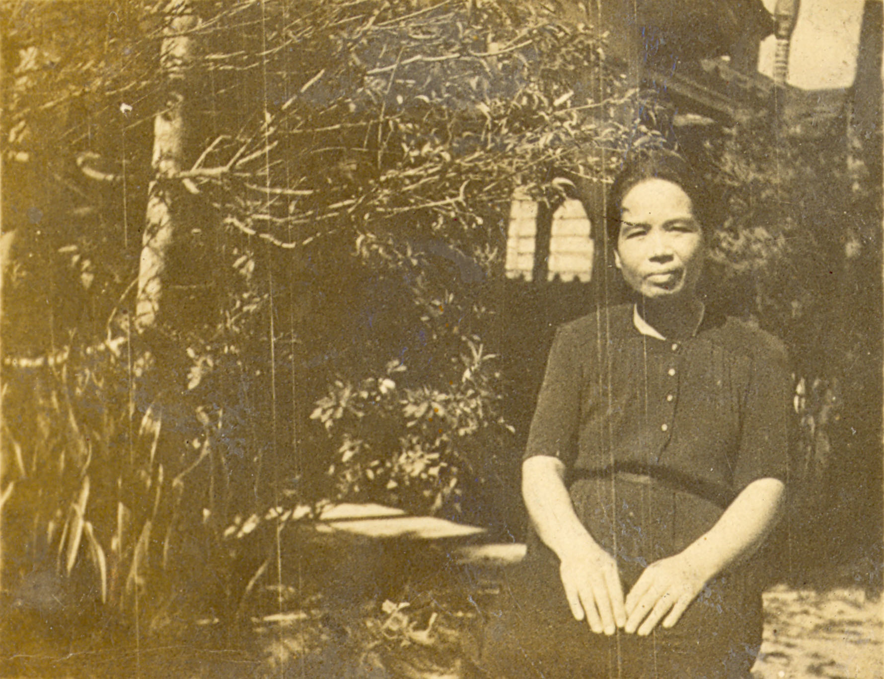 鄧雨賢之妻鍾有妹,在鄧雨賢逝世後獨力扶養年齡幼小兒女們,拍攝於辦公室前花圃