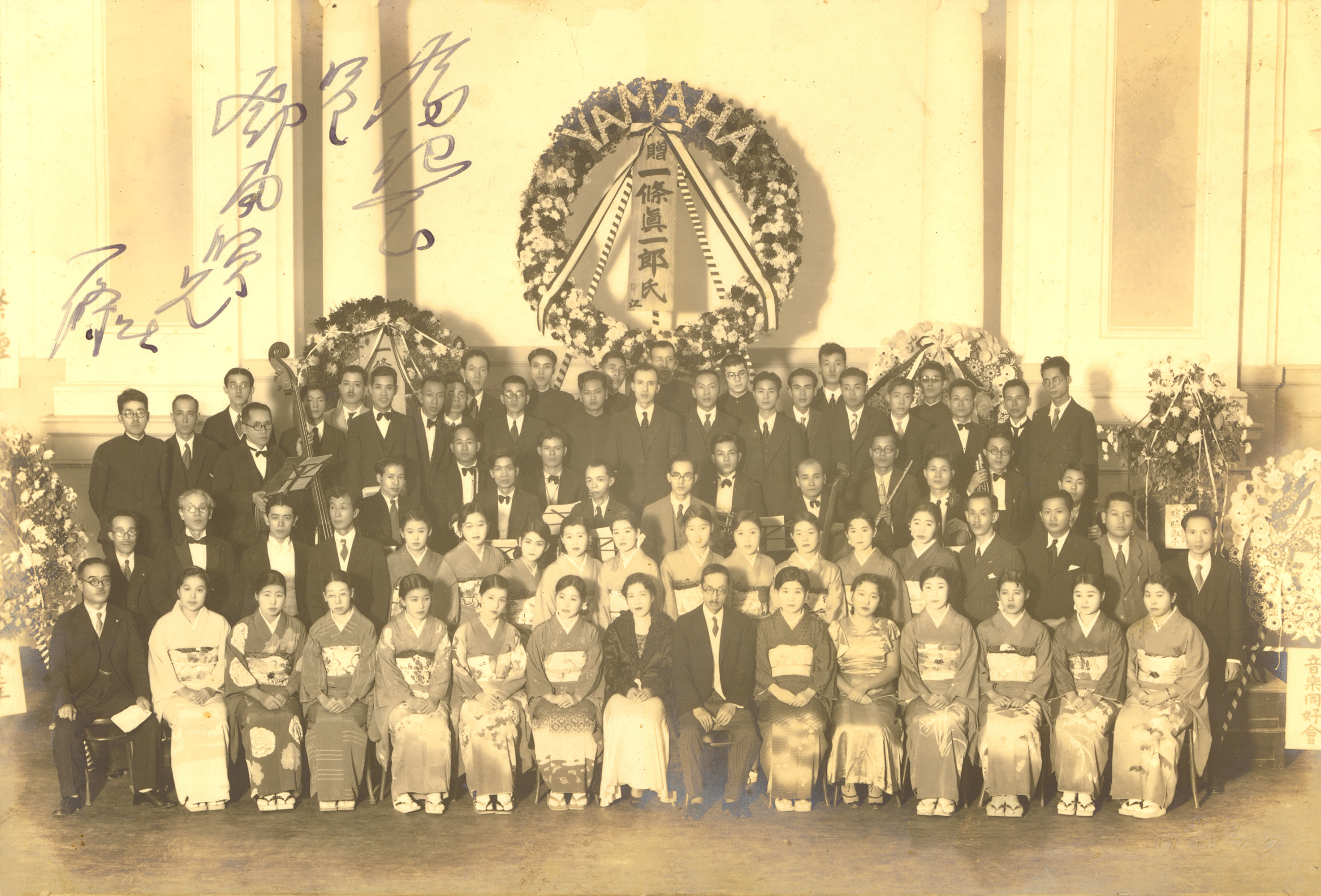 鄧雨賢(後排右一)受到一條真一郎(又名一條慎三郎)老師的影響至深,奠定日後音樂成就。