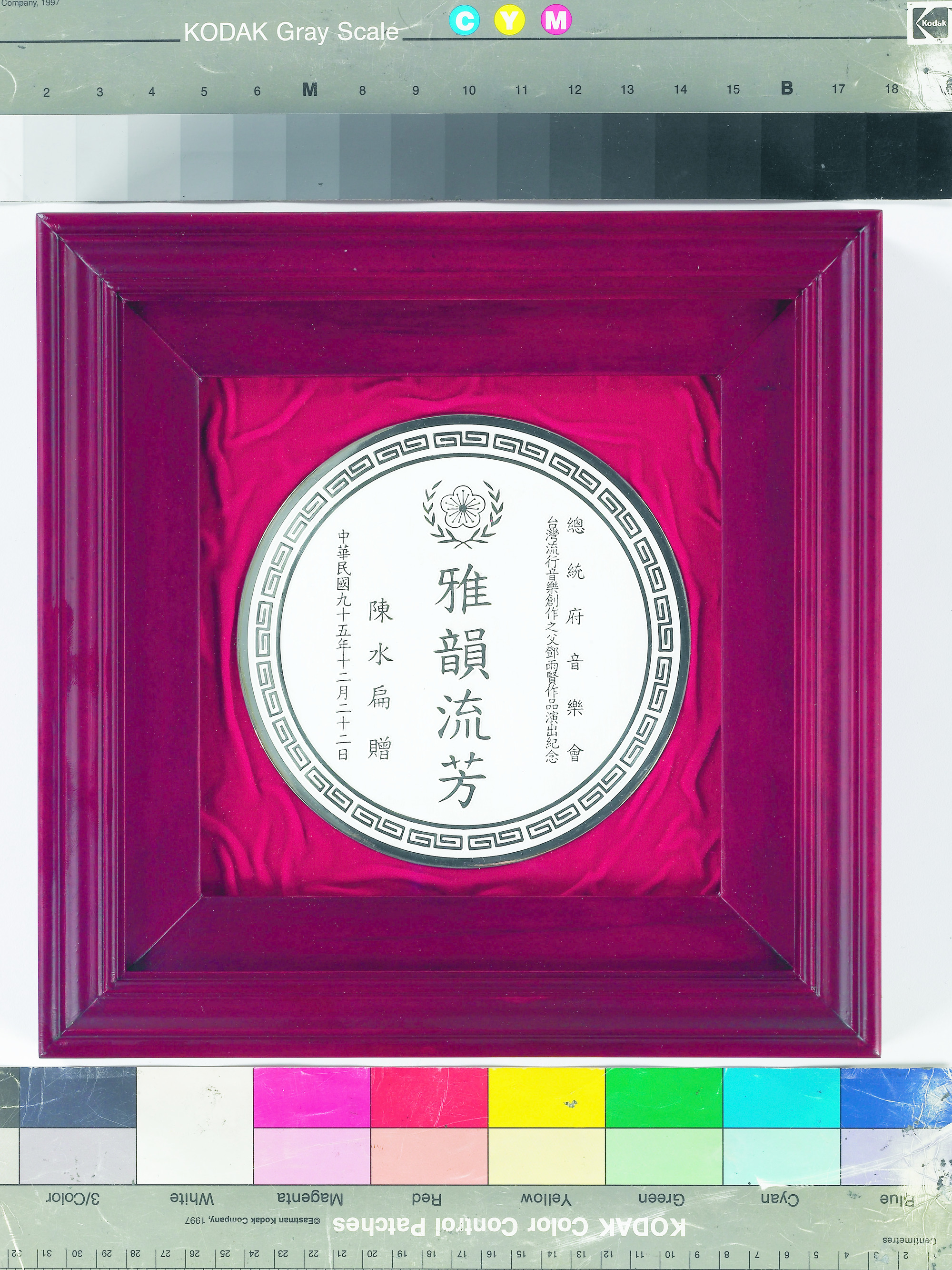 2006年總統府歲末音樂會,由當時陳水扁總統頒贈紀念獎盤,上書「雅韻流芳」四字。
