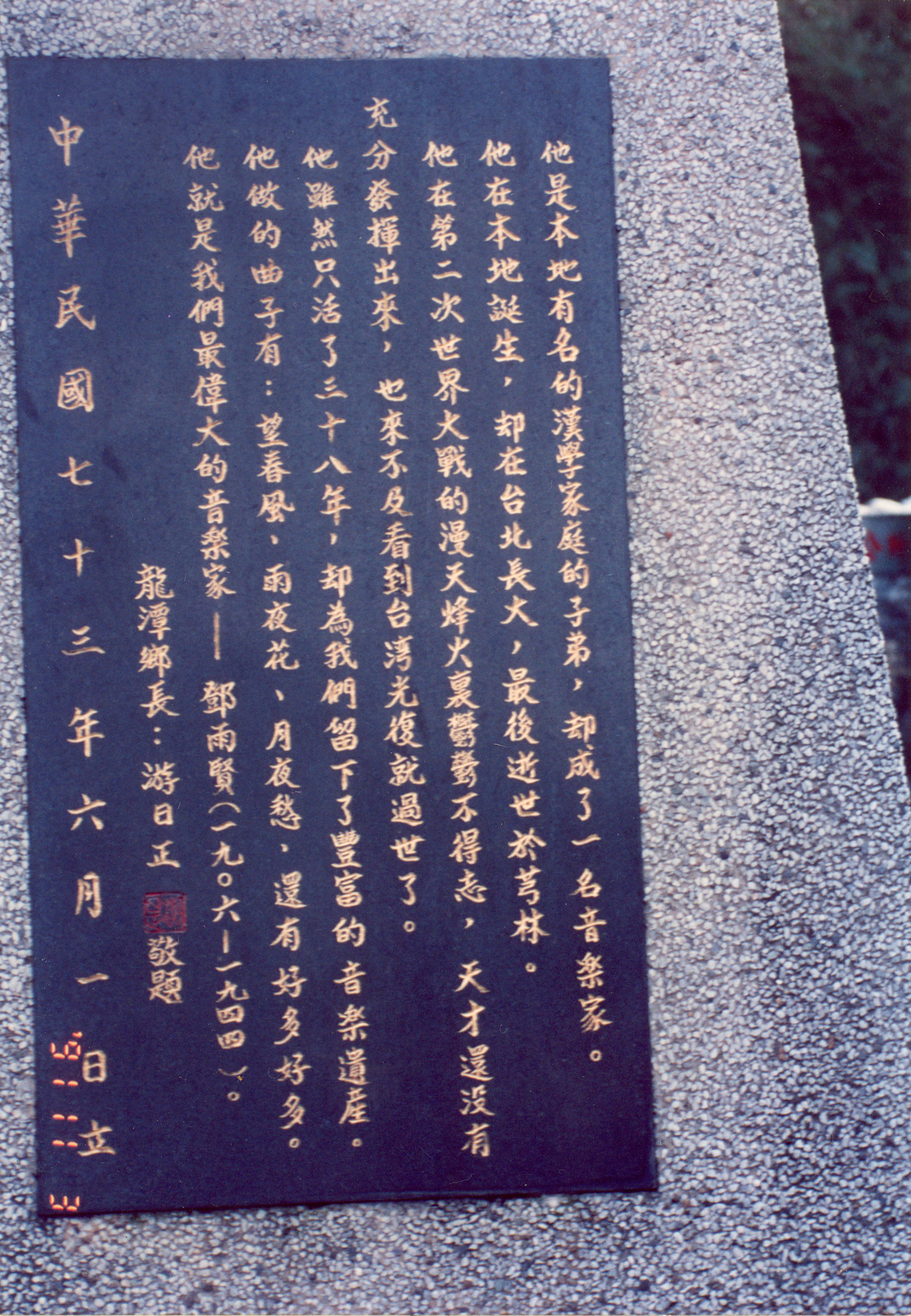 他就是我們最偉大的音樂家--鄧雨賢(一九零六~一九四四)。